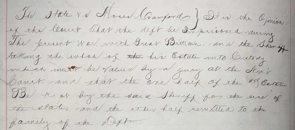 Read about Moses Crawford and his trial for Treason during the Revolutionary War.