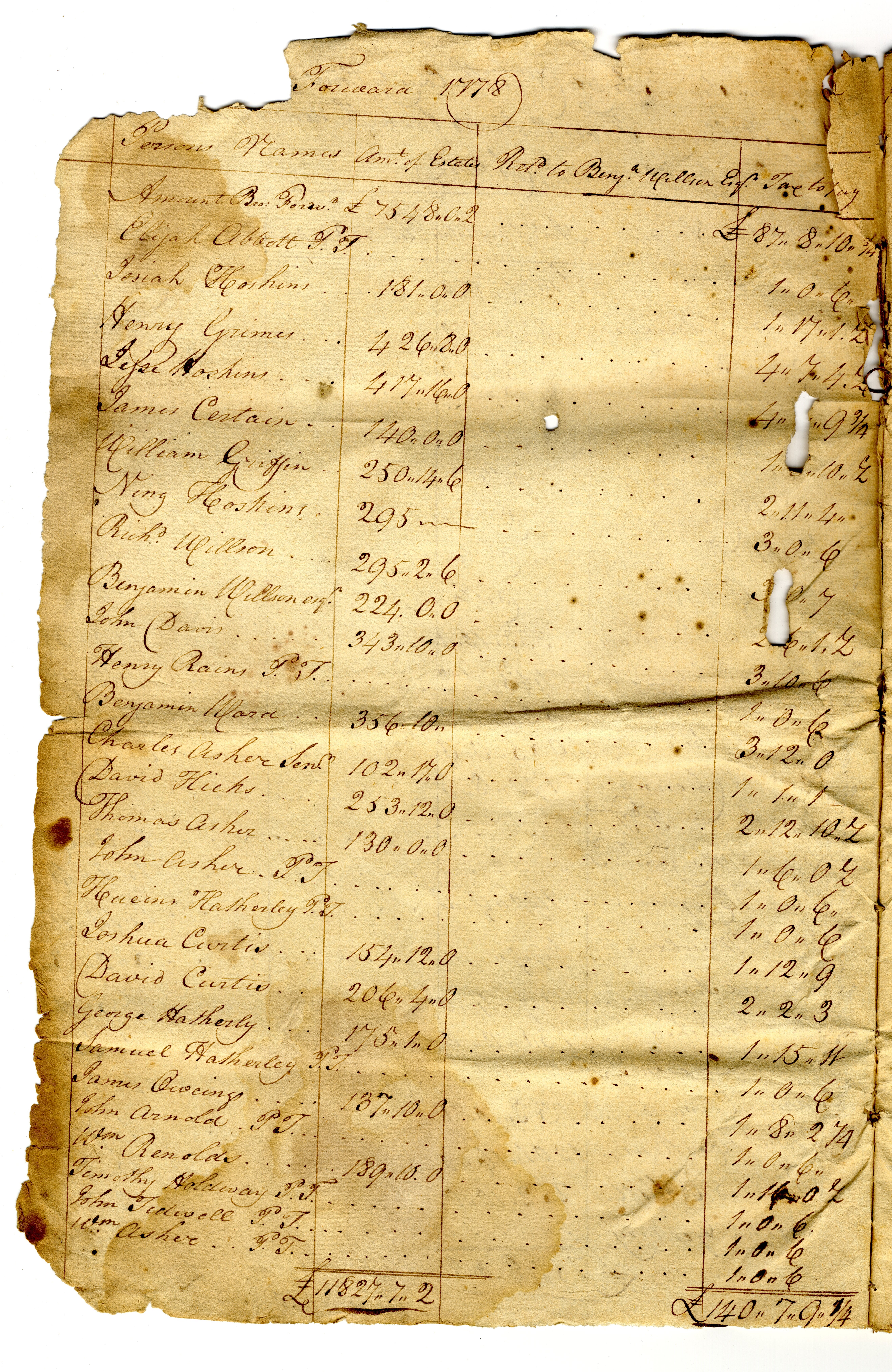 1778 Tax Lists