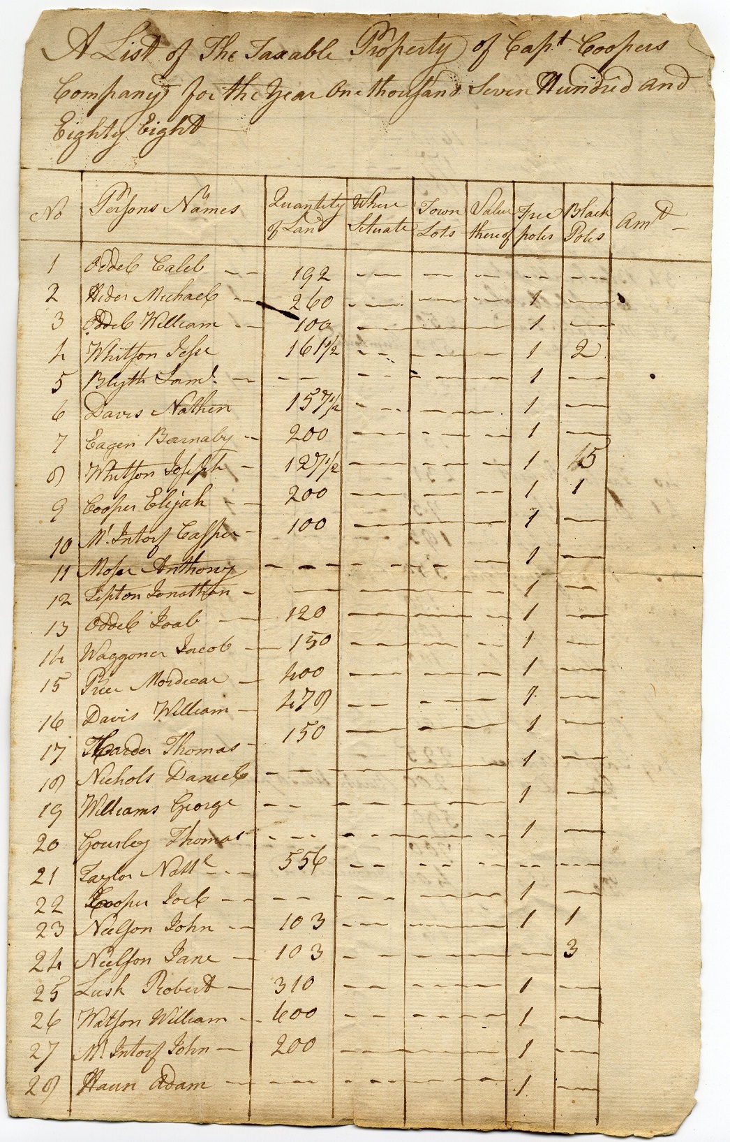 Tax List – 1788 – Capt Cooper’s Co (A) Resized