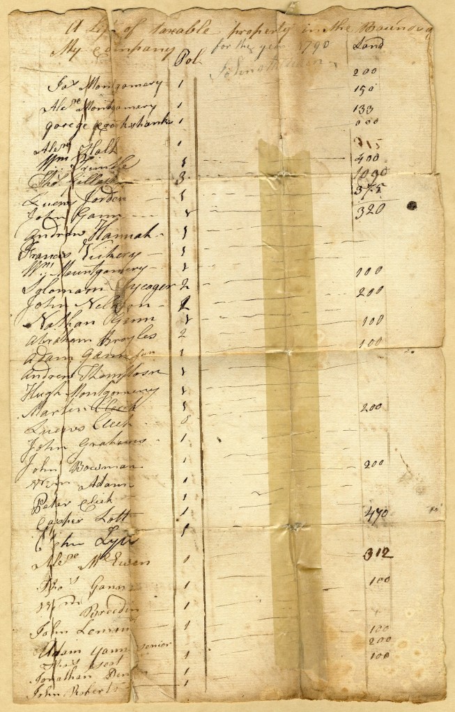 RESIZED Tax List – 1790 – Capt John Millikan Co. – A