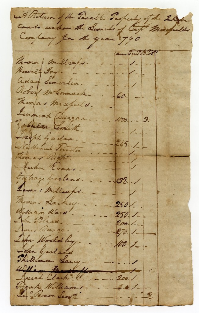 Tax List 1790 – Cap Maxfield Co (B)