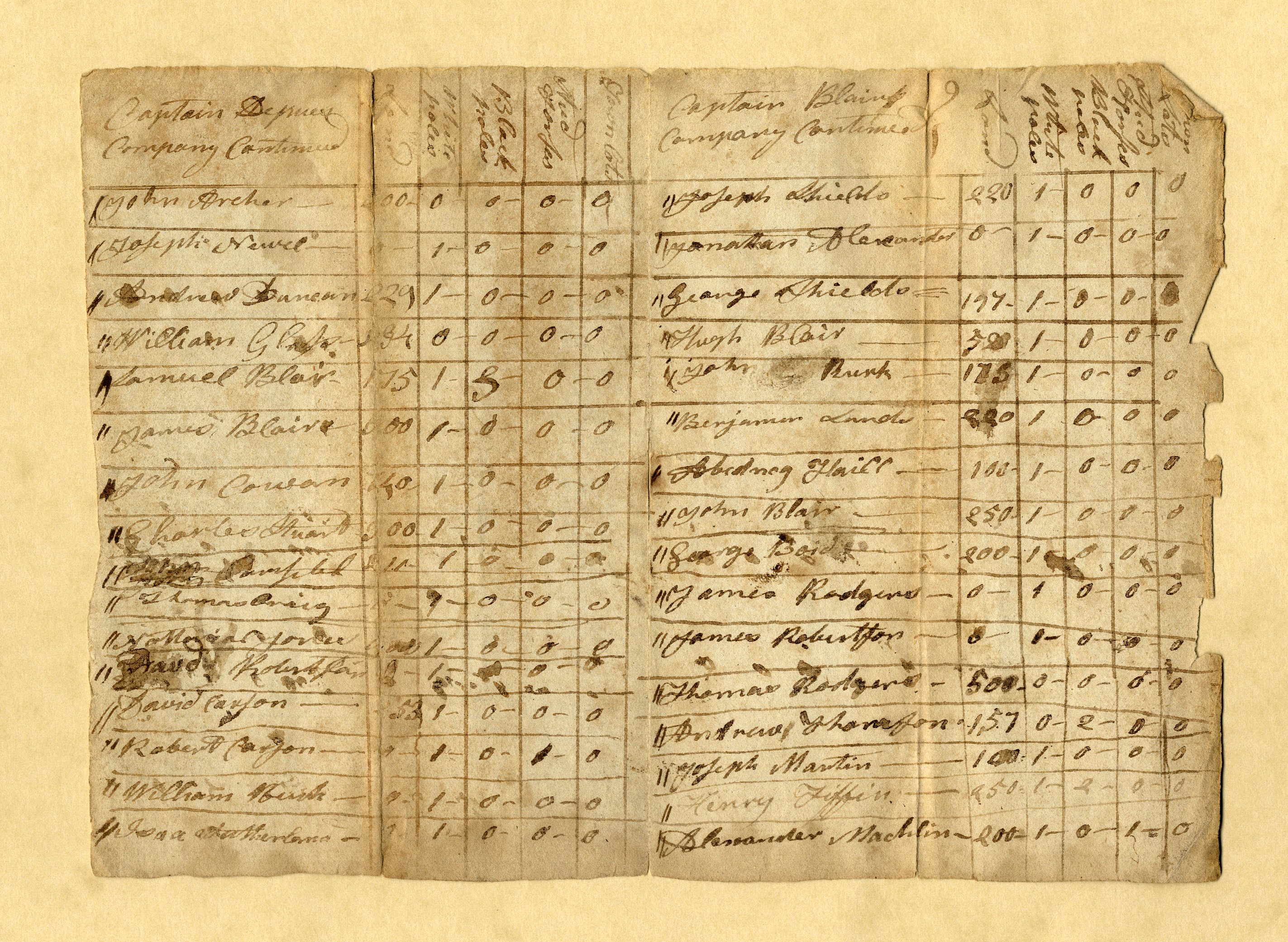 Tax List 1790 – Capts Depew & Blair -B
