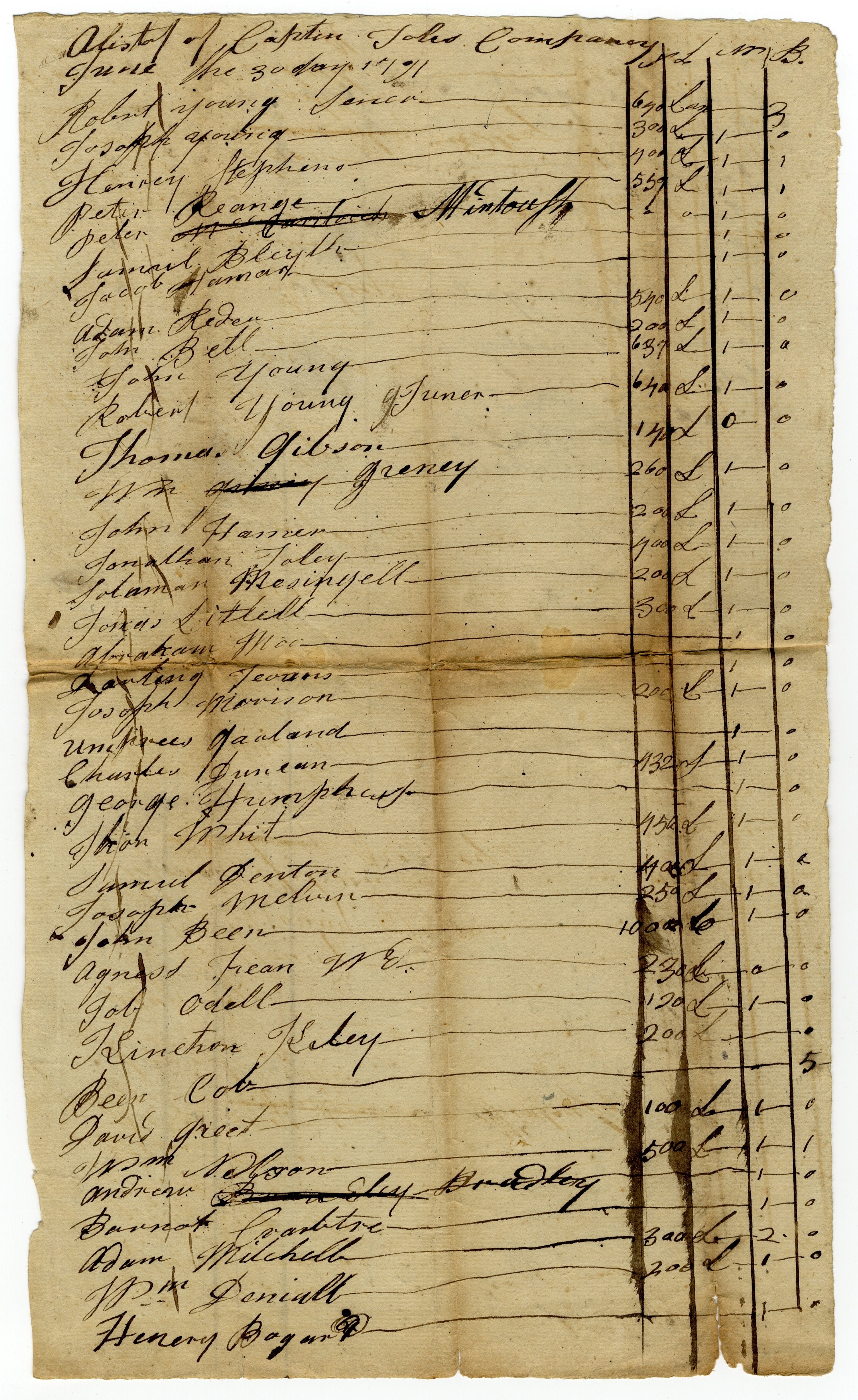 R Tax List 1791 – Captain Tulles’ Company – A