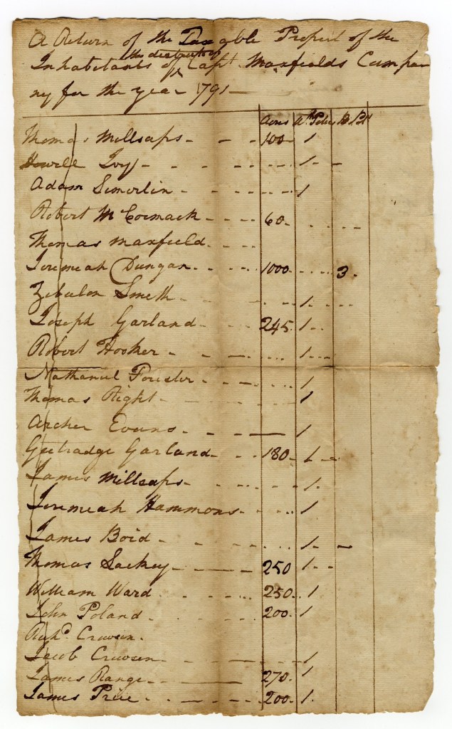 Tax List 1791 – Cap Maxfield Co (A)
