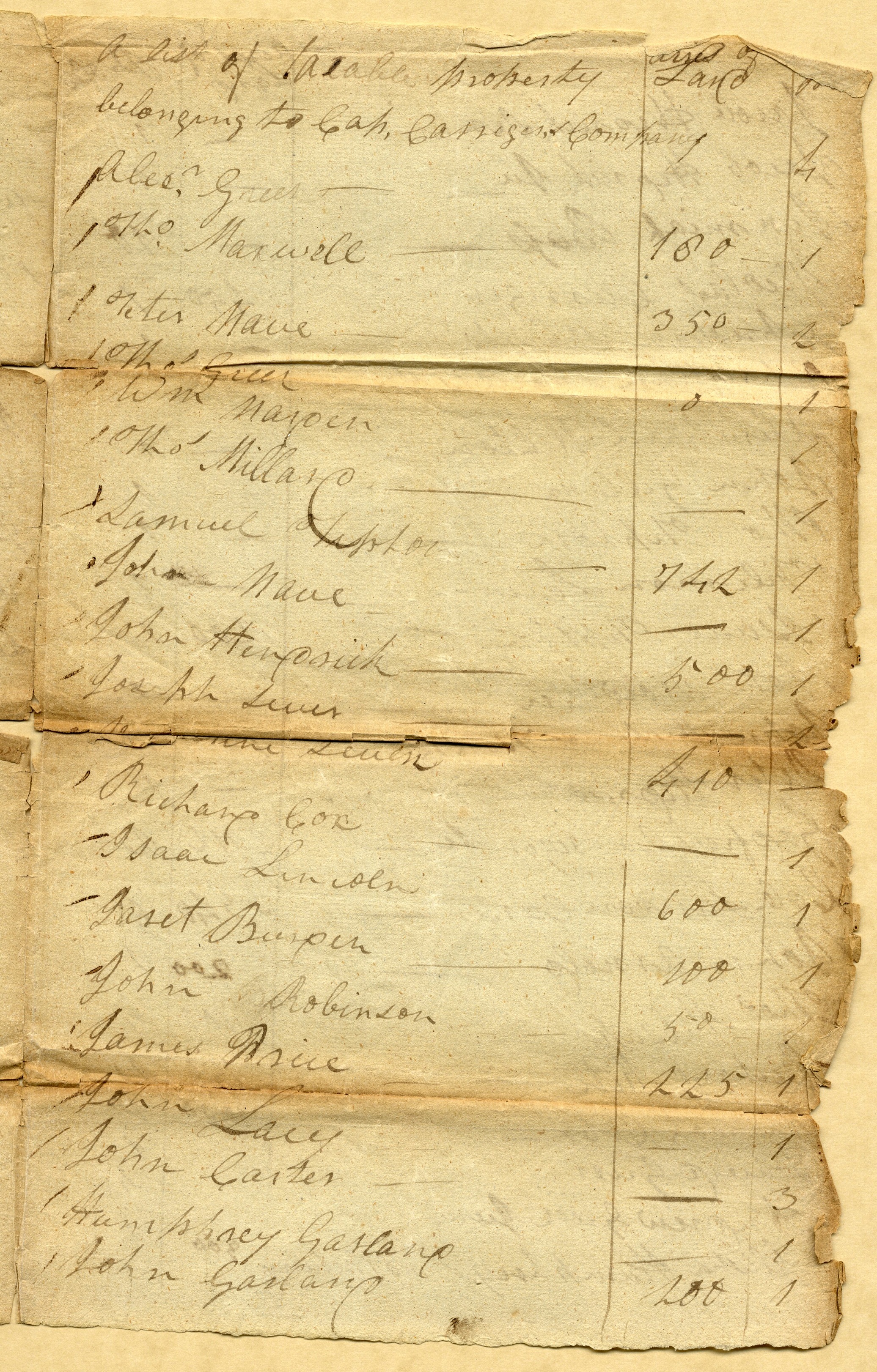 R Tax List 1792 – Capt Carriger’s Co. – 2