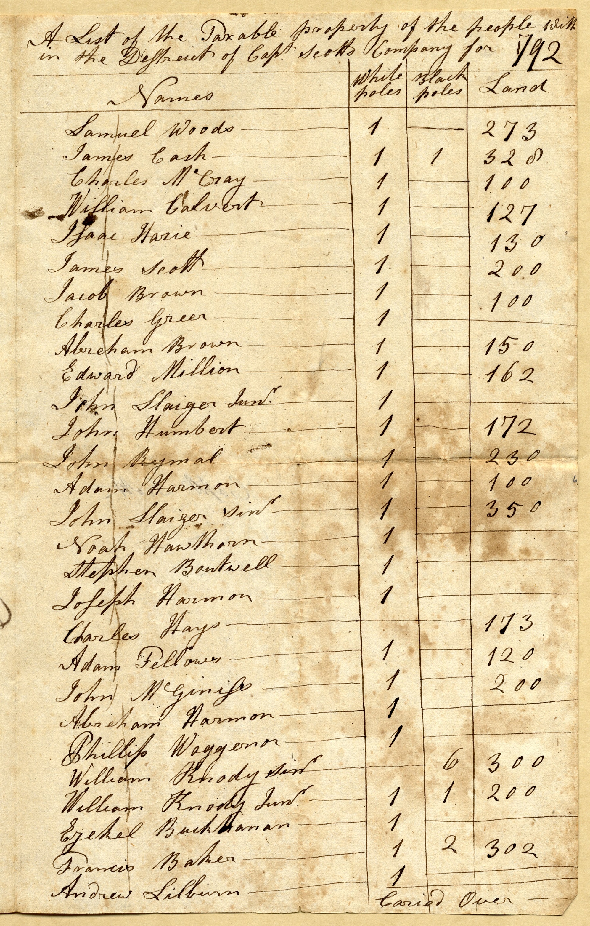 R Tax List 1792 – Capt Scott’s Co. – 1