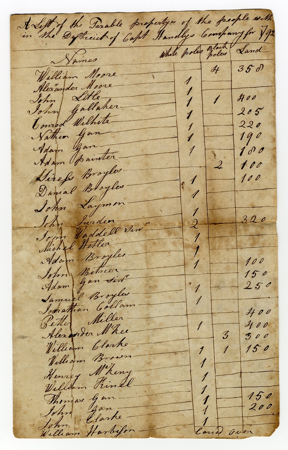 Tax List 1792 – Cap Handly’s Co (A)