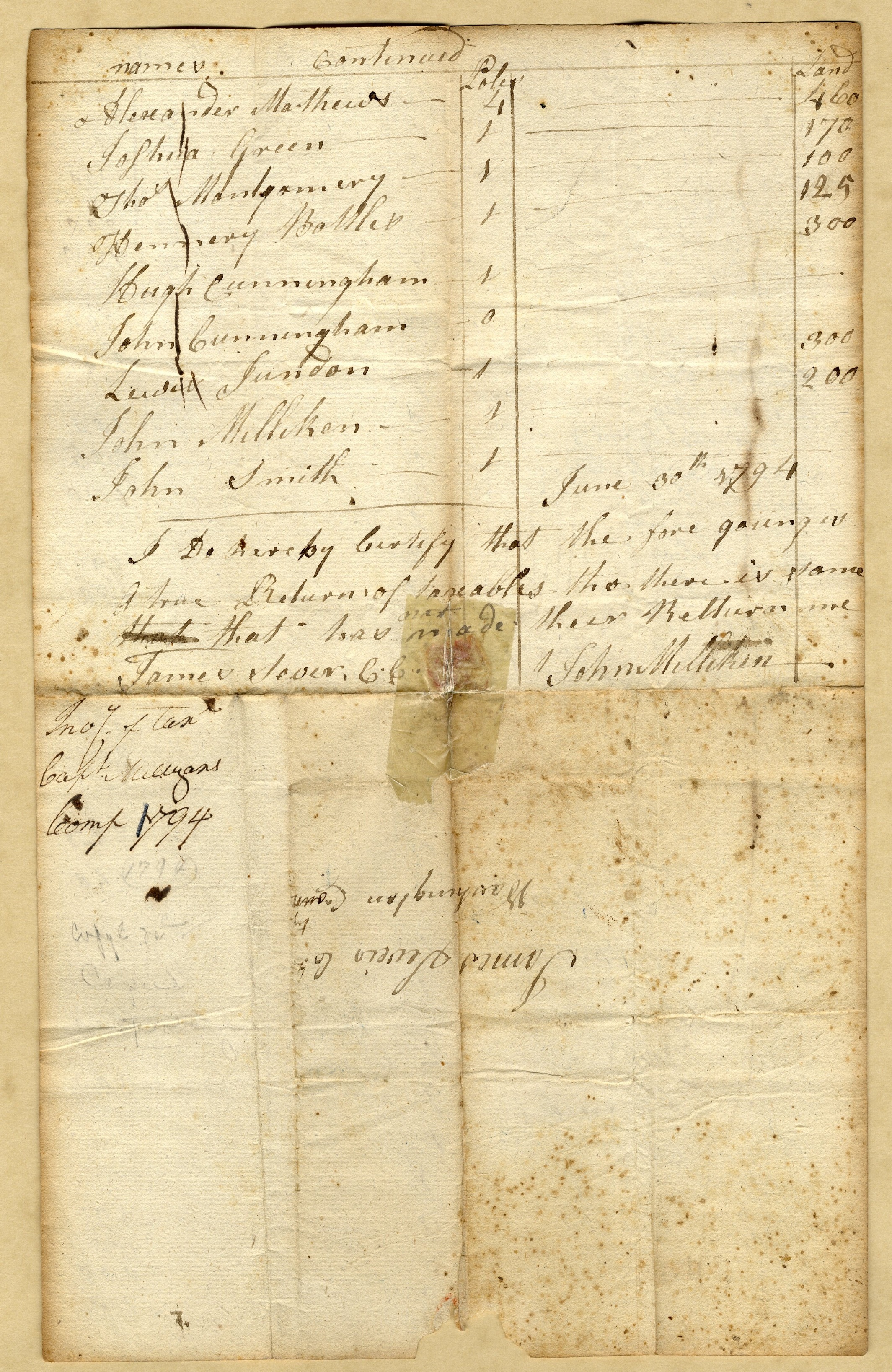 R Tax List 1794 – Capt John Milliken’s Company – B