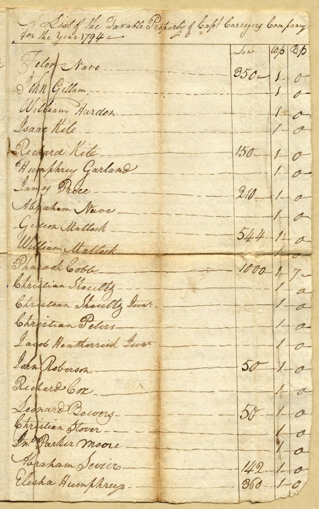 R Tax List 1794 – Captain Carriger’s Company – 1