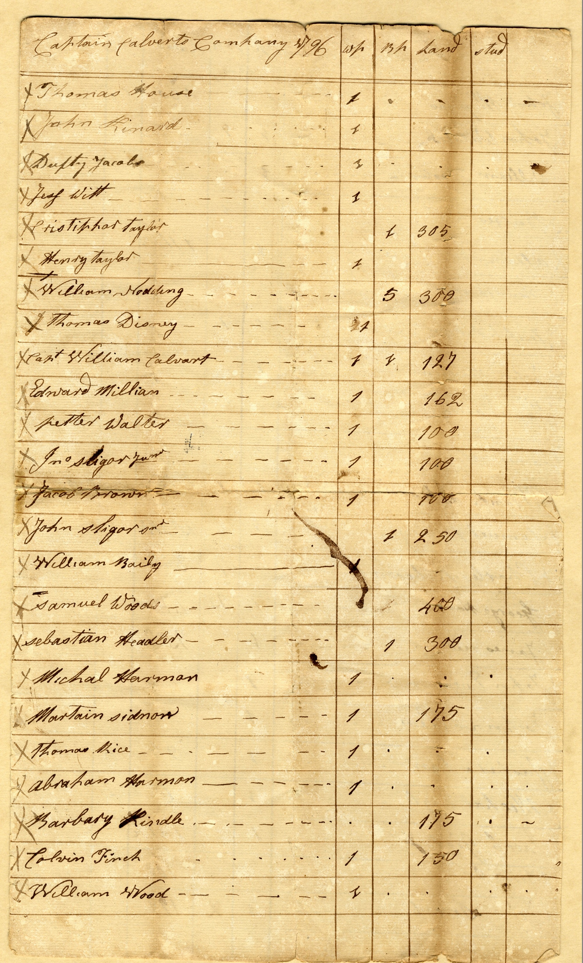 R Tax List 1796 – Captain Calvert’s Company – 1