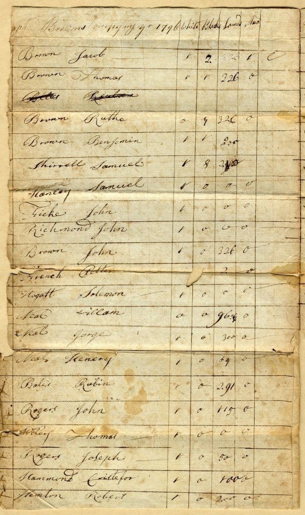 R Tax List 1796 – Captain Jacob Brown’s Company – 1