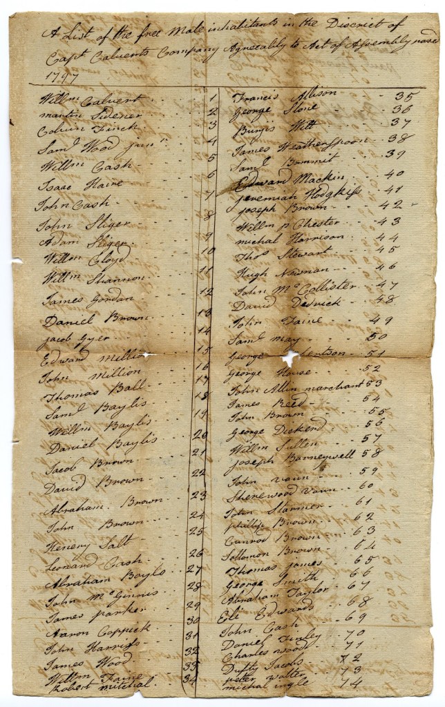 R Tax List 1797 or 1798 Capt Calvert’s Co