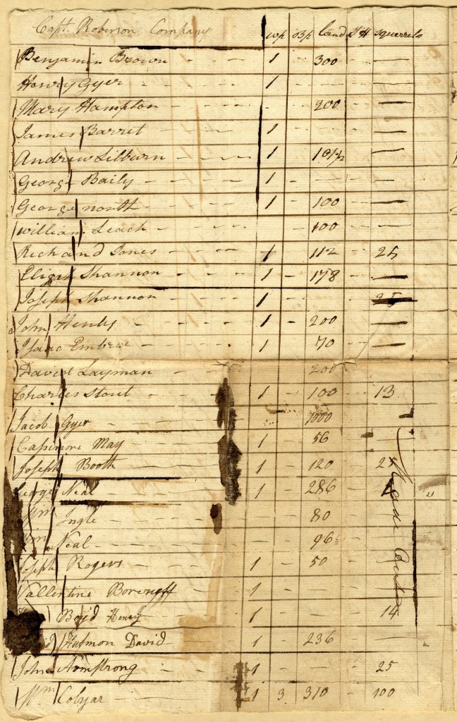 R Tax List 1798 – Capt Charles Roberson’s Co. – 2
