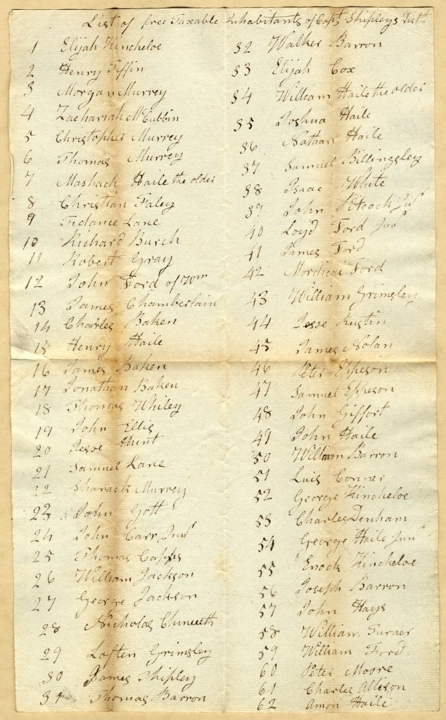 R Tax List 1798 – Capt Shipley’s Co. – Free poles 1
