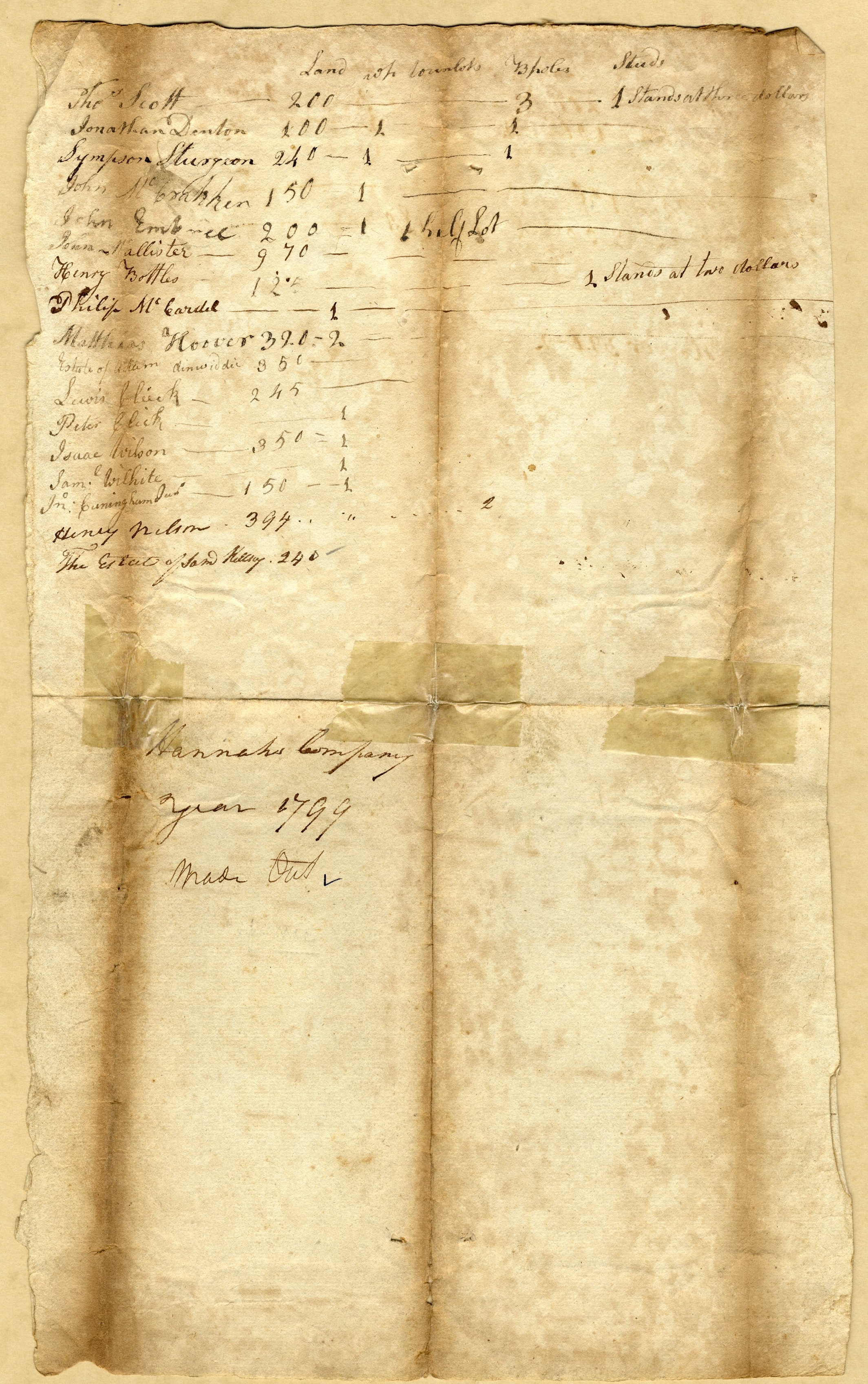 R Tax List 1799 – Capt Hannah’s Co. – 2