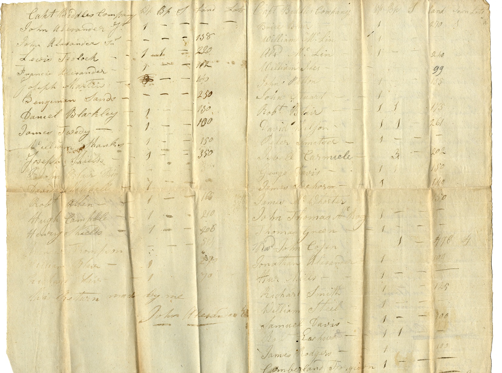Tax List 1801 – Captain Biddles’ Company – A top