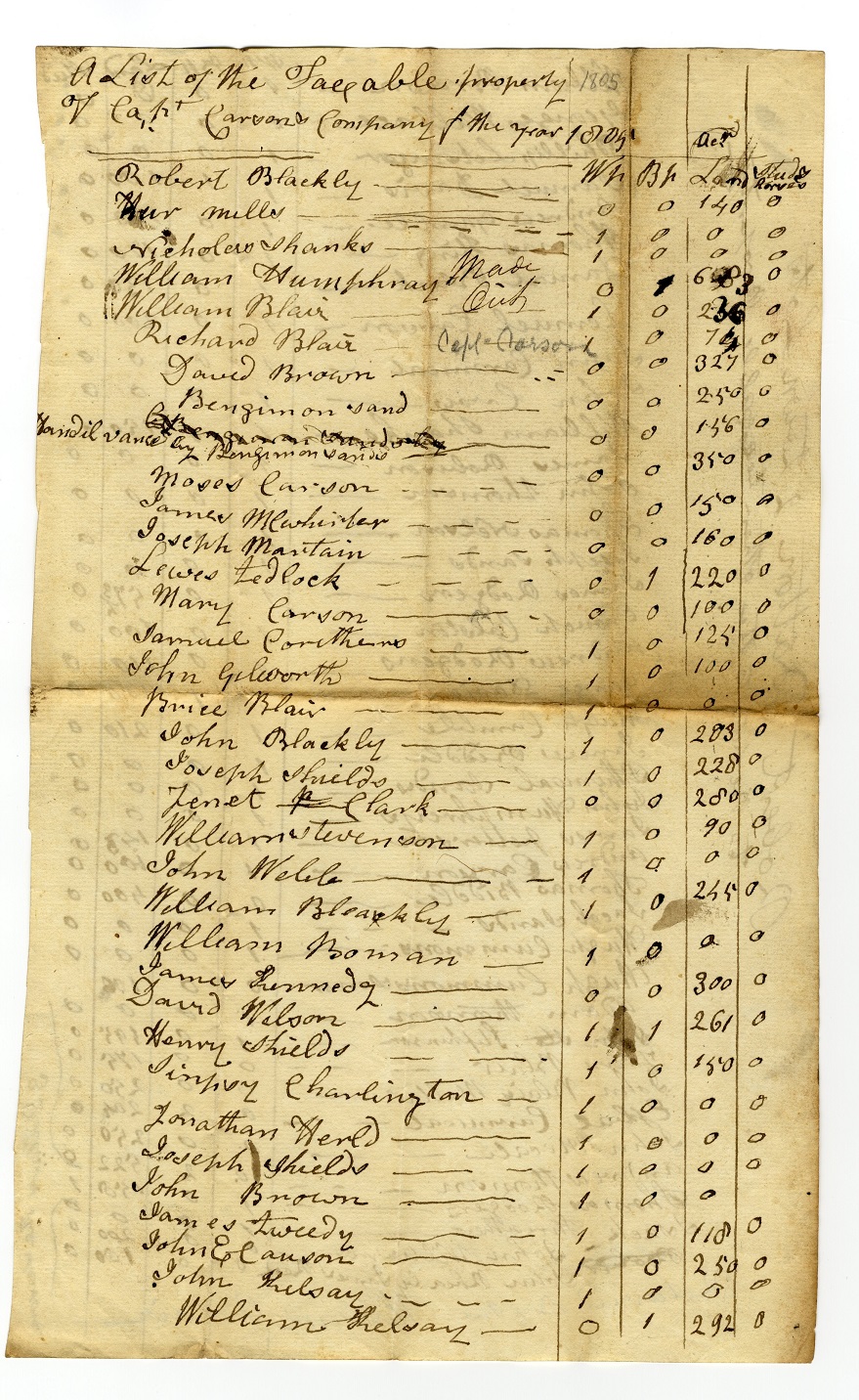 Tax List 1801 – Captain Carson’s Company – 1