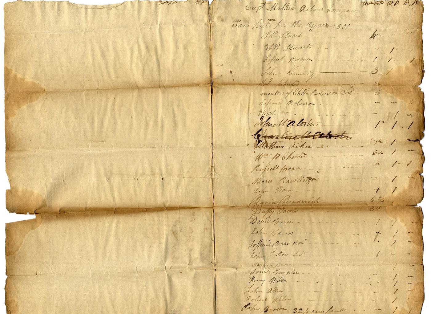 Tax List 1801 – Captain Matthew Aiken’s Company – A Top