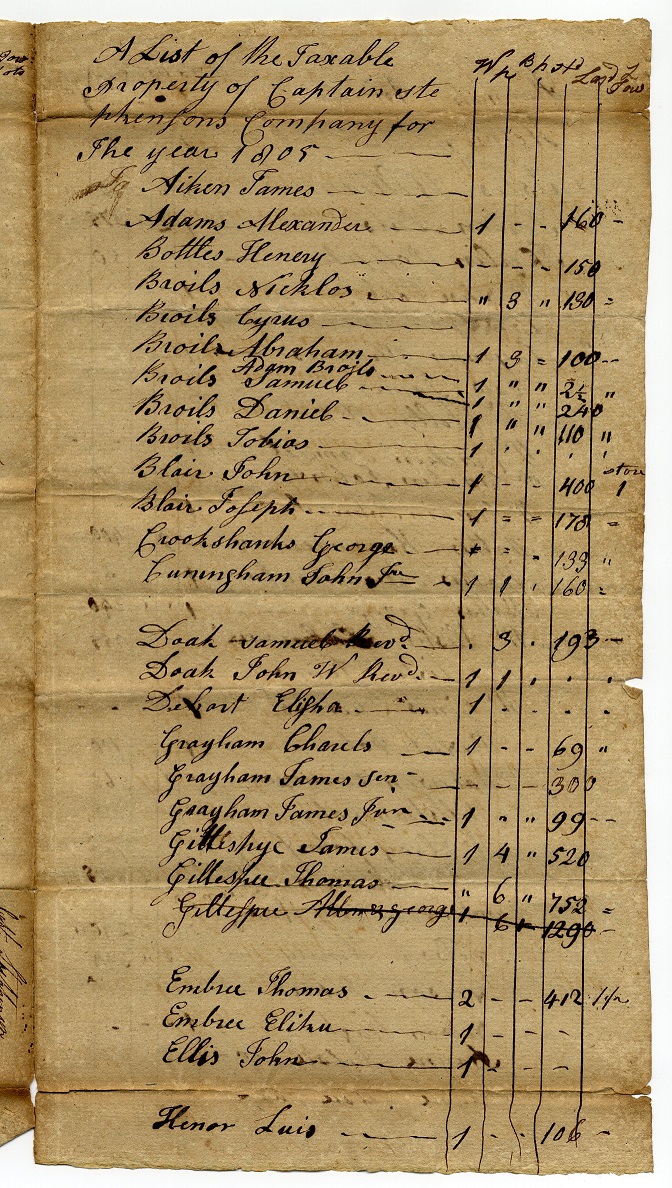 Tax List 1805 – Capt. Stephenson’s Company – 1