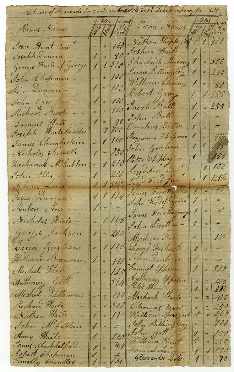 Previous Image Next Image Tax List 1806 – Capt. Doke’s (Doak’s) Company – 1 Like this:Like Loading...