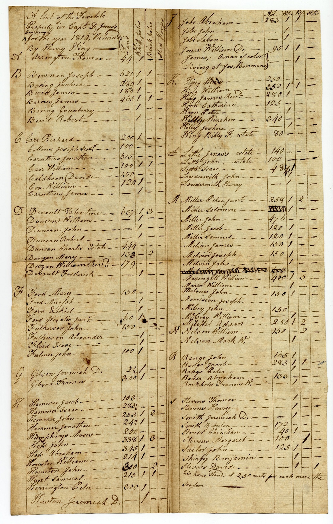 Tax List – 1819 Capt. D. Jones’ Company -1