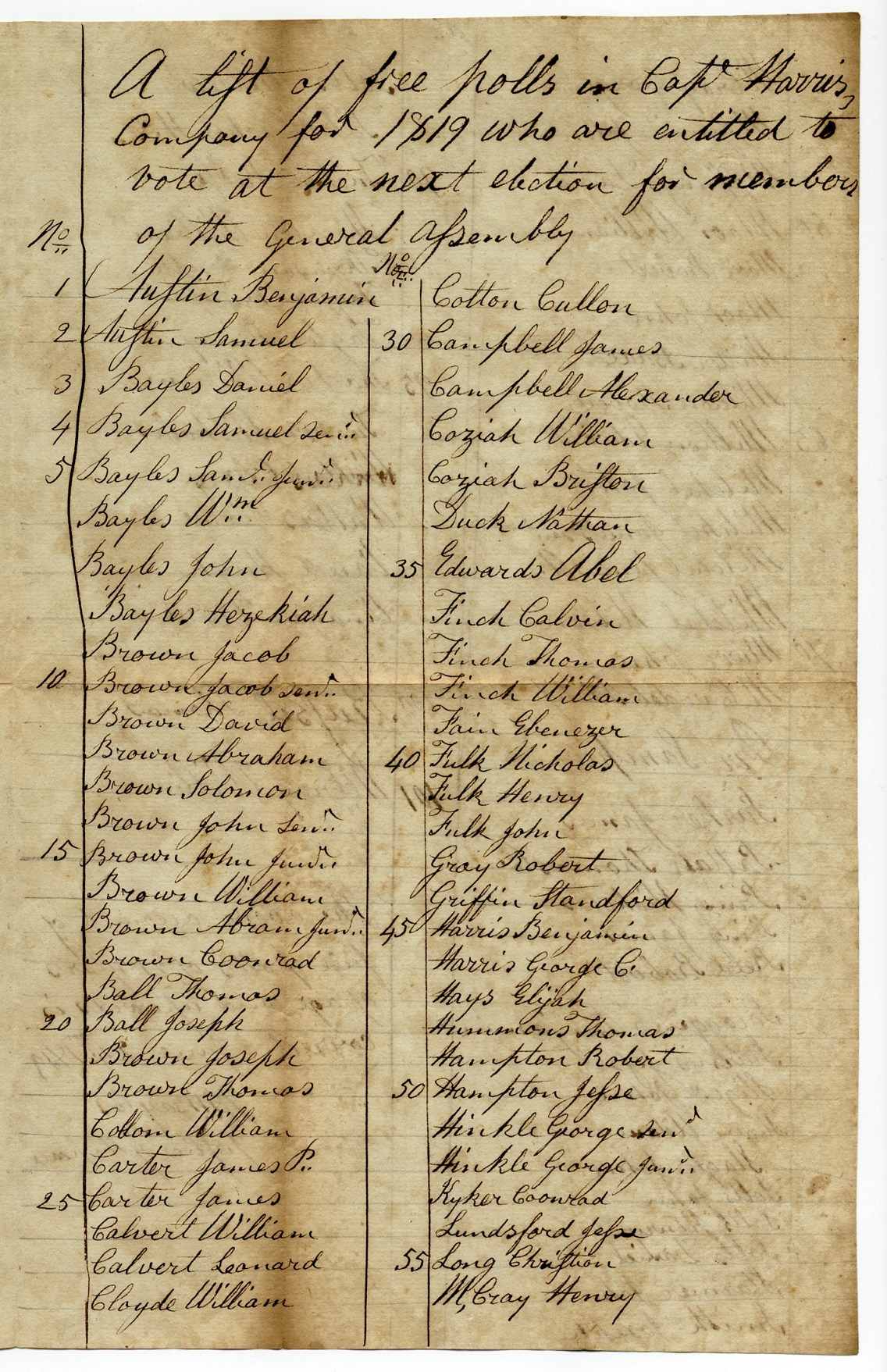 Tax List – 1819 Capt. Harris’ Company -1