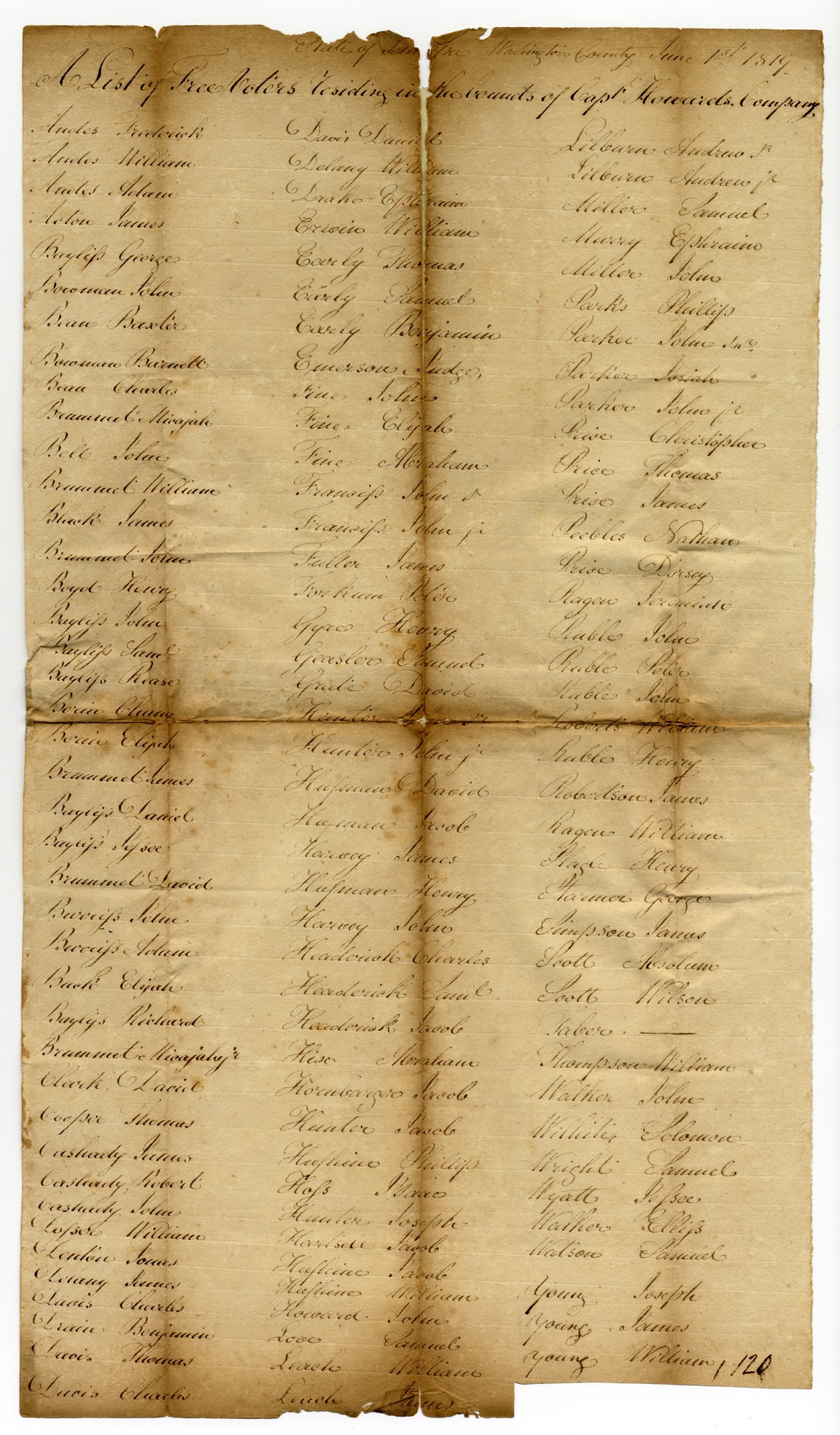 Tax List – 1819 Capt. Howard’s Company -1