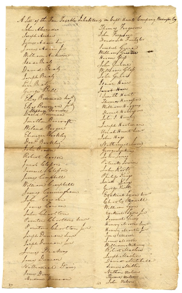 Tax List – 1819 Capt. Hunt’s Company -1