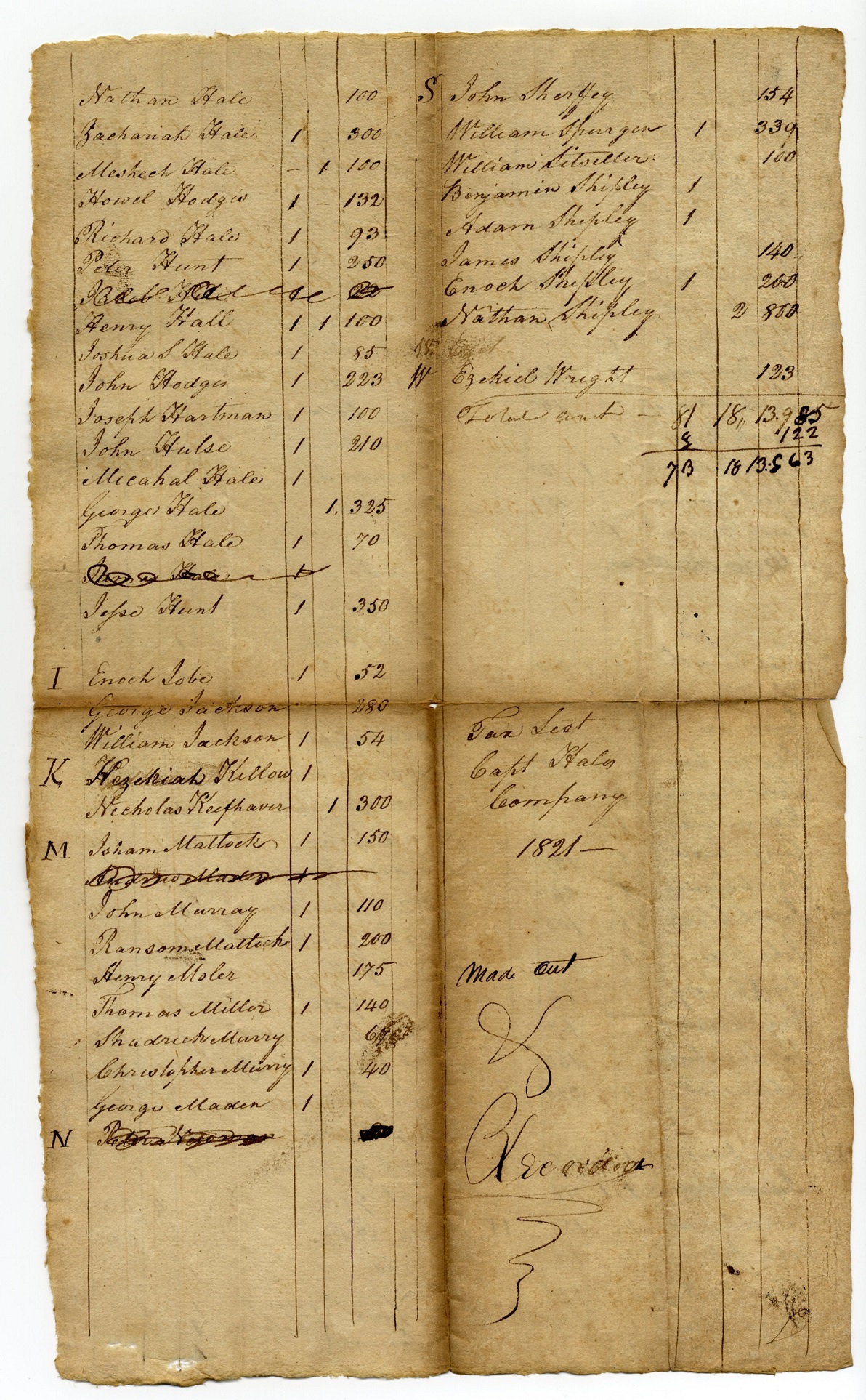 Tax List – 1821 Capt. Hales’ Company -2
