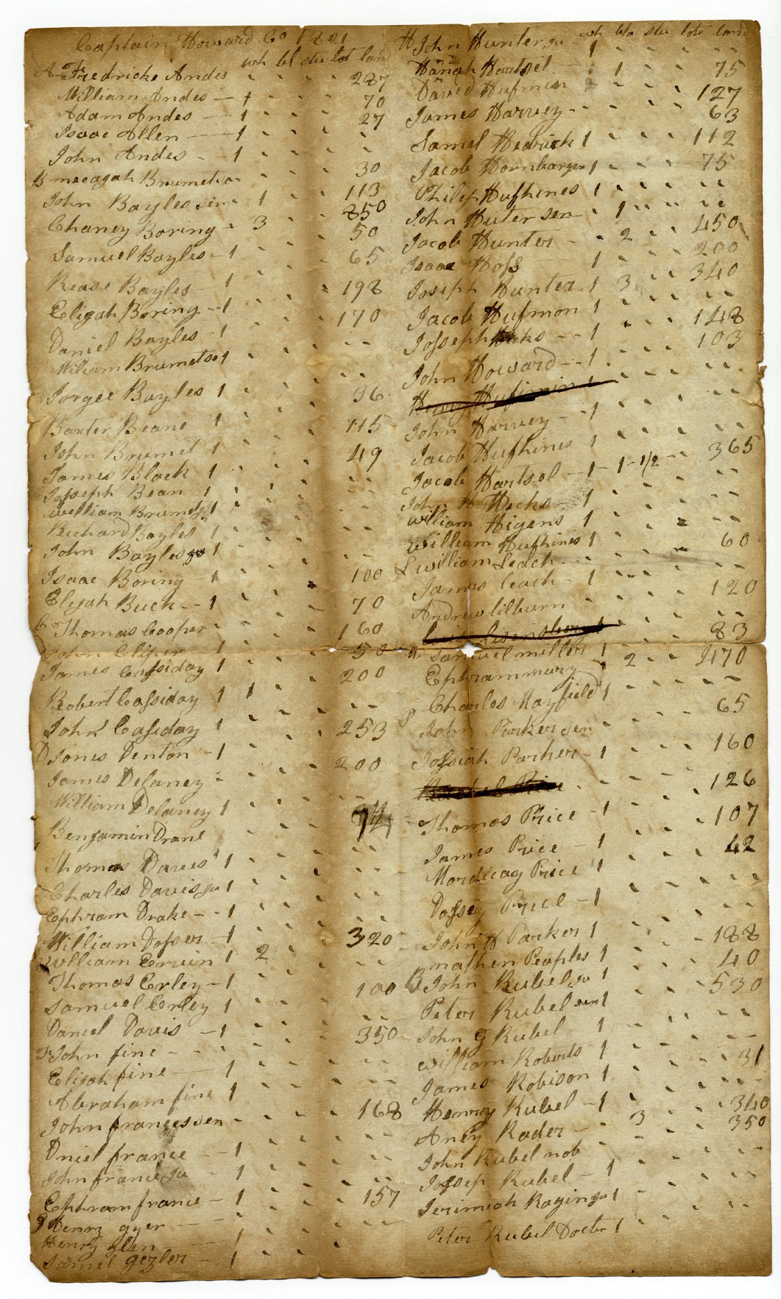 Tax List – 1821 Capt. Howard’s Company – 1