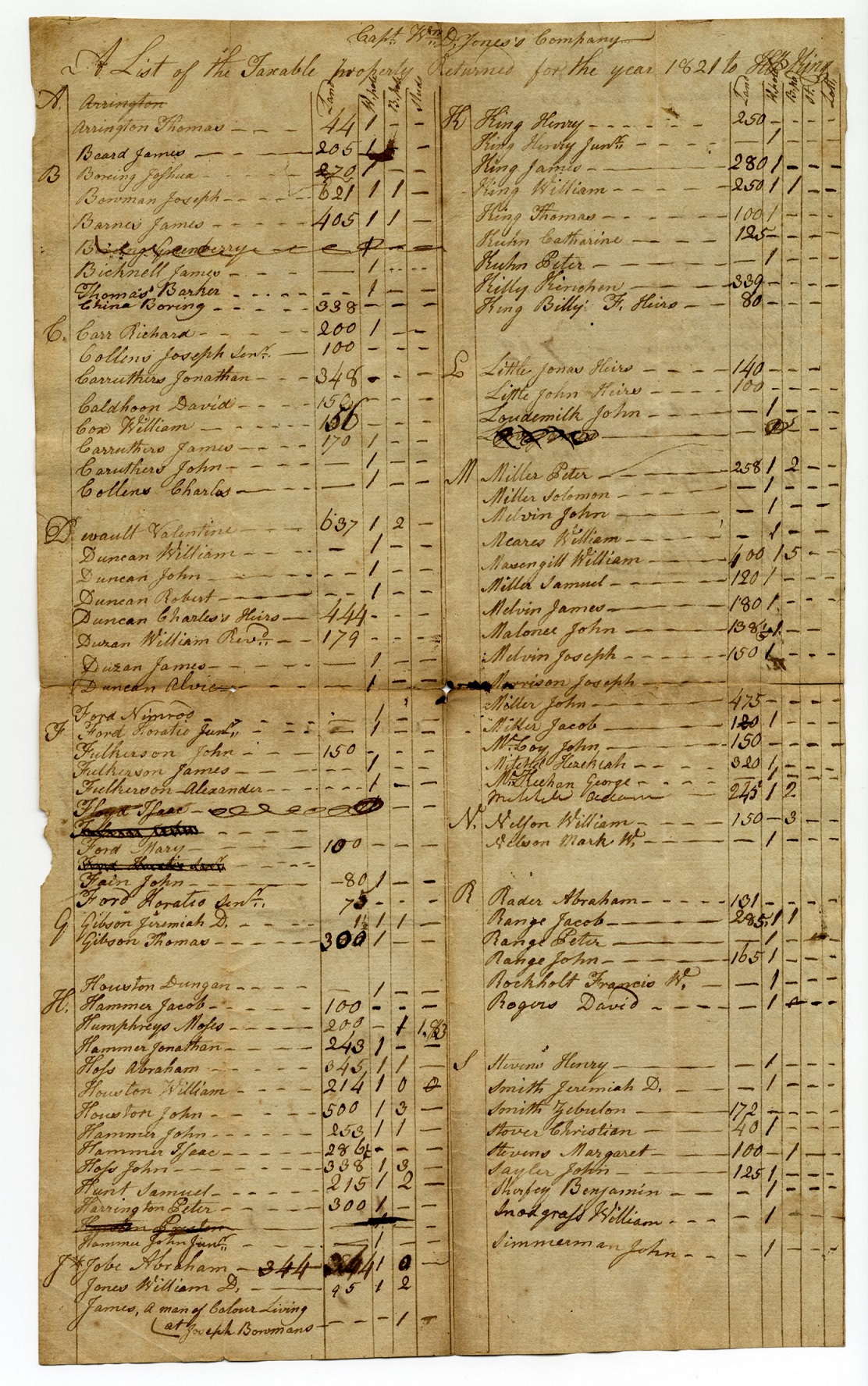 Tax List – 1821 Capt. Jones’ Company -1
