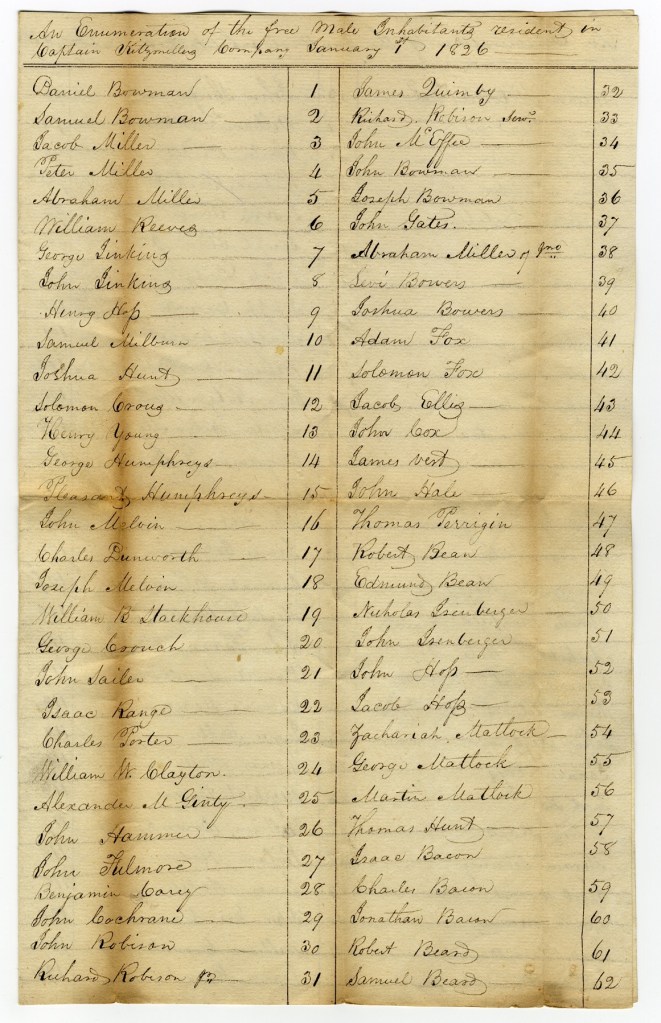 Tax List 1826 – Cap Kitzmiller’s Co (A)