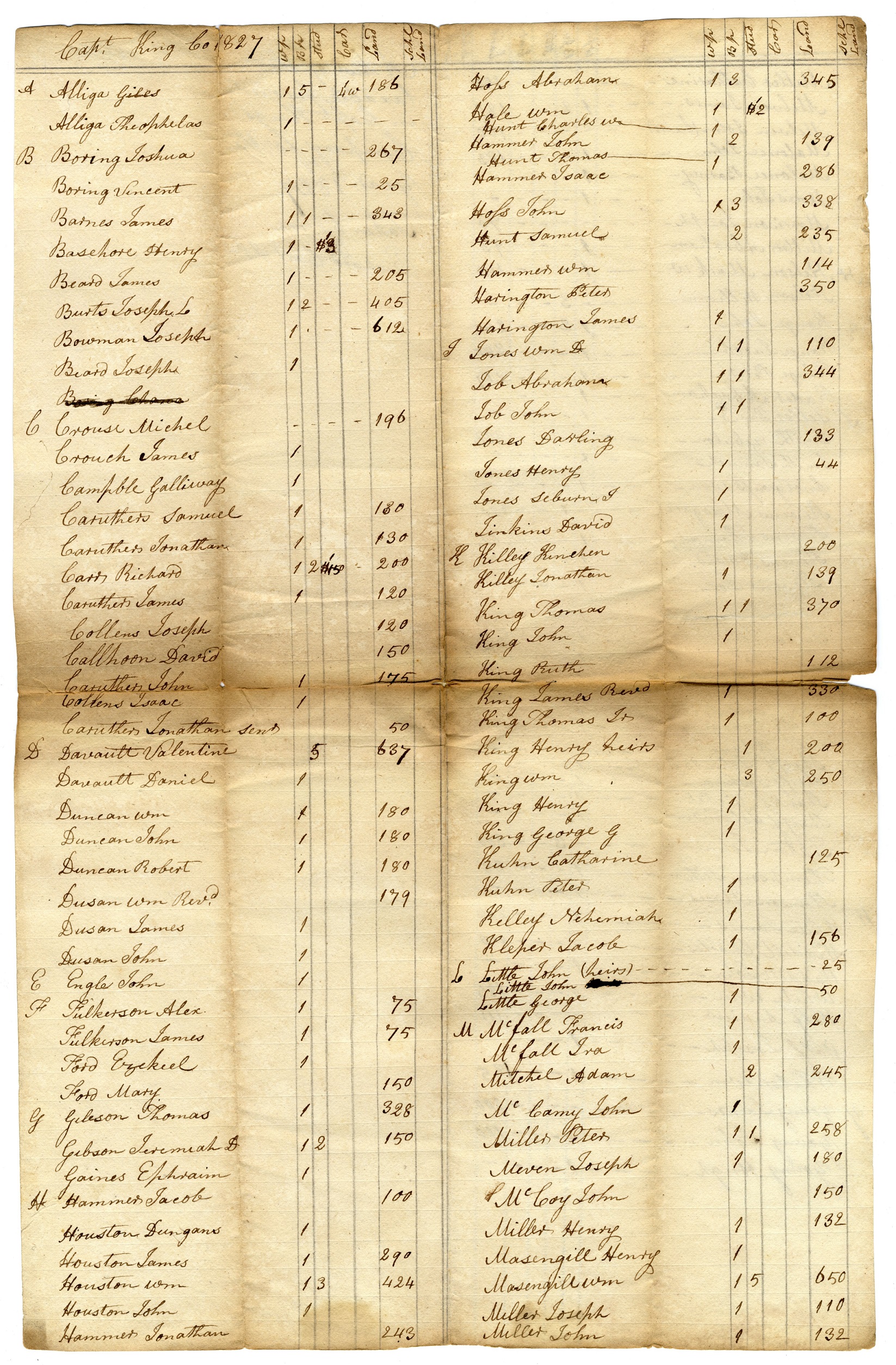 Tax List 1827 – Cap King’s Co (A)