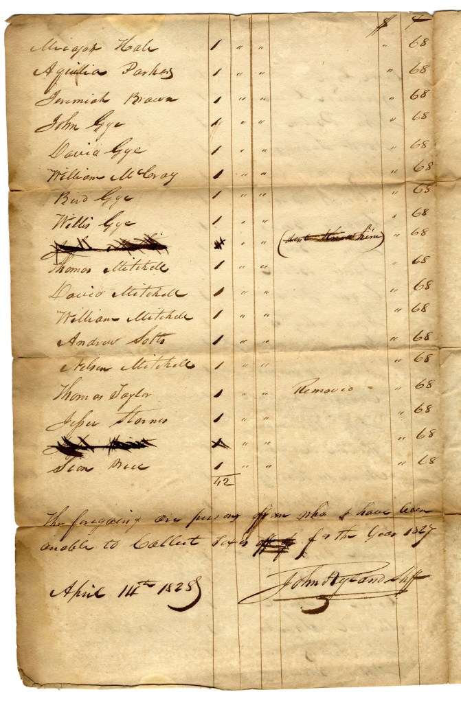 Tax List Delinquents 1827 (B)