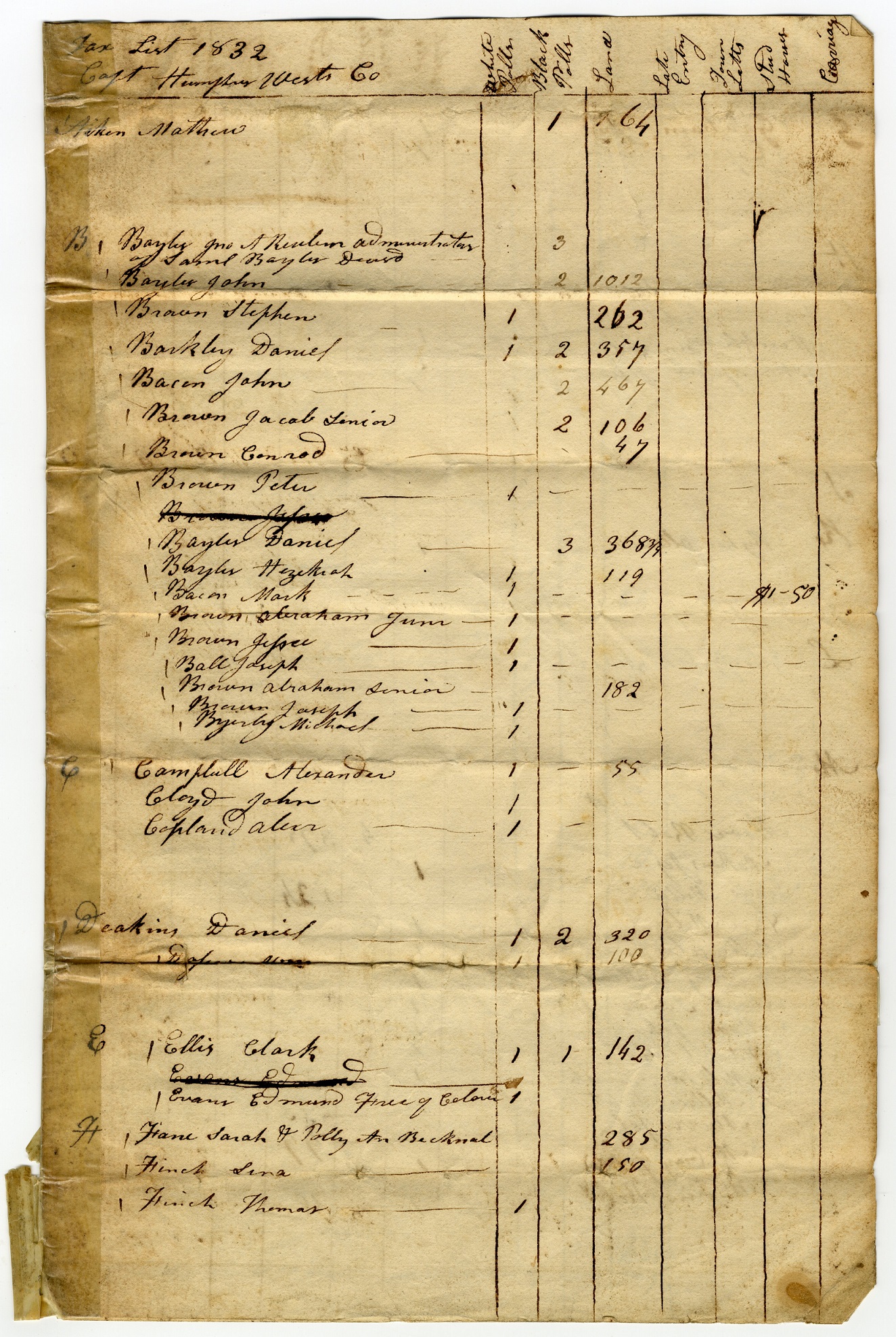 Tax List 1832 – Cap West’s Co (A)