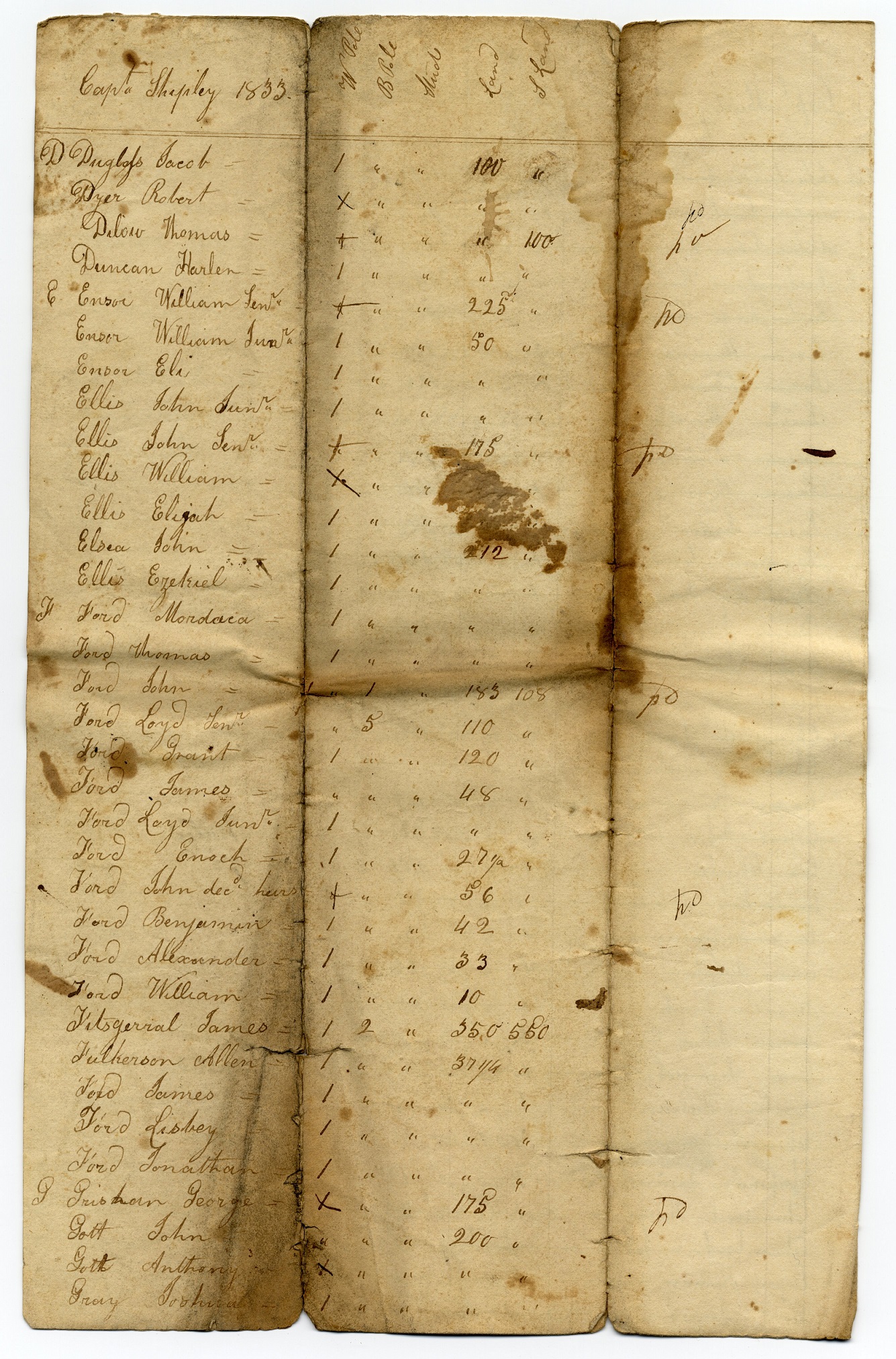 Tax List 1833 – Cap Shipley’s Co (B)