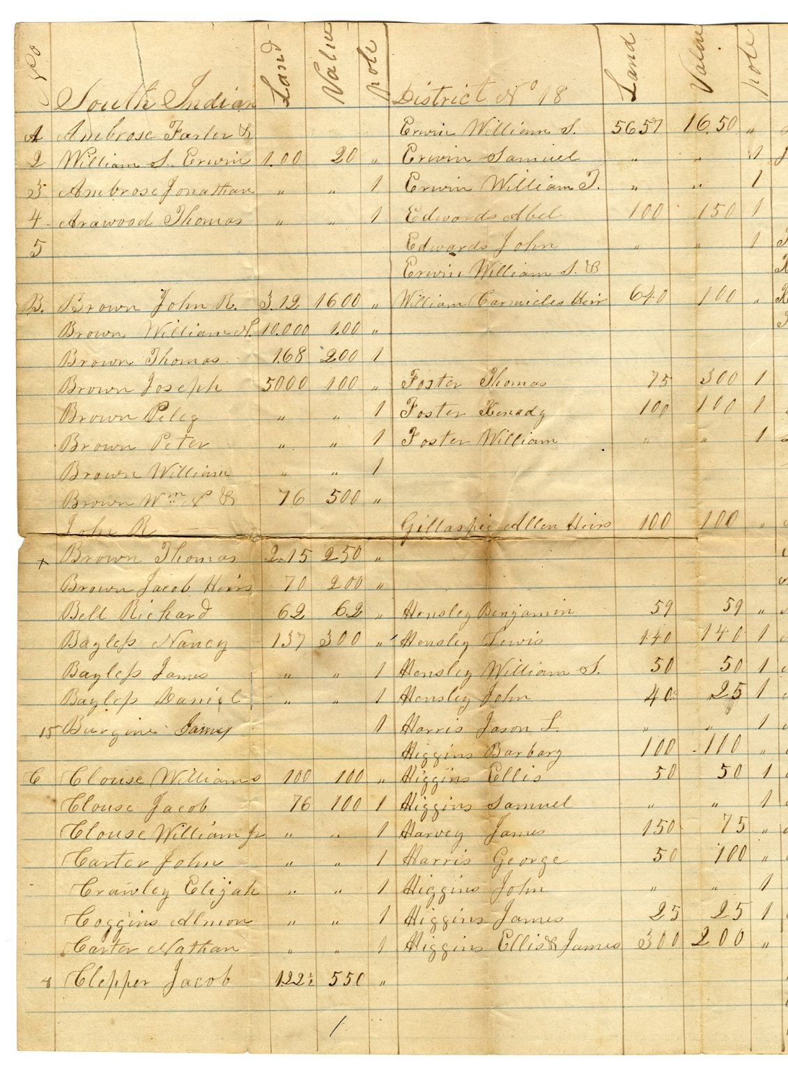 Tax List – 1843 District 18 William T. Erwin -1A