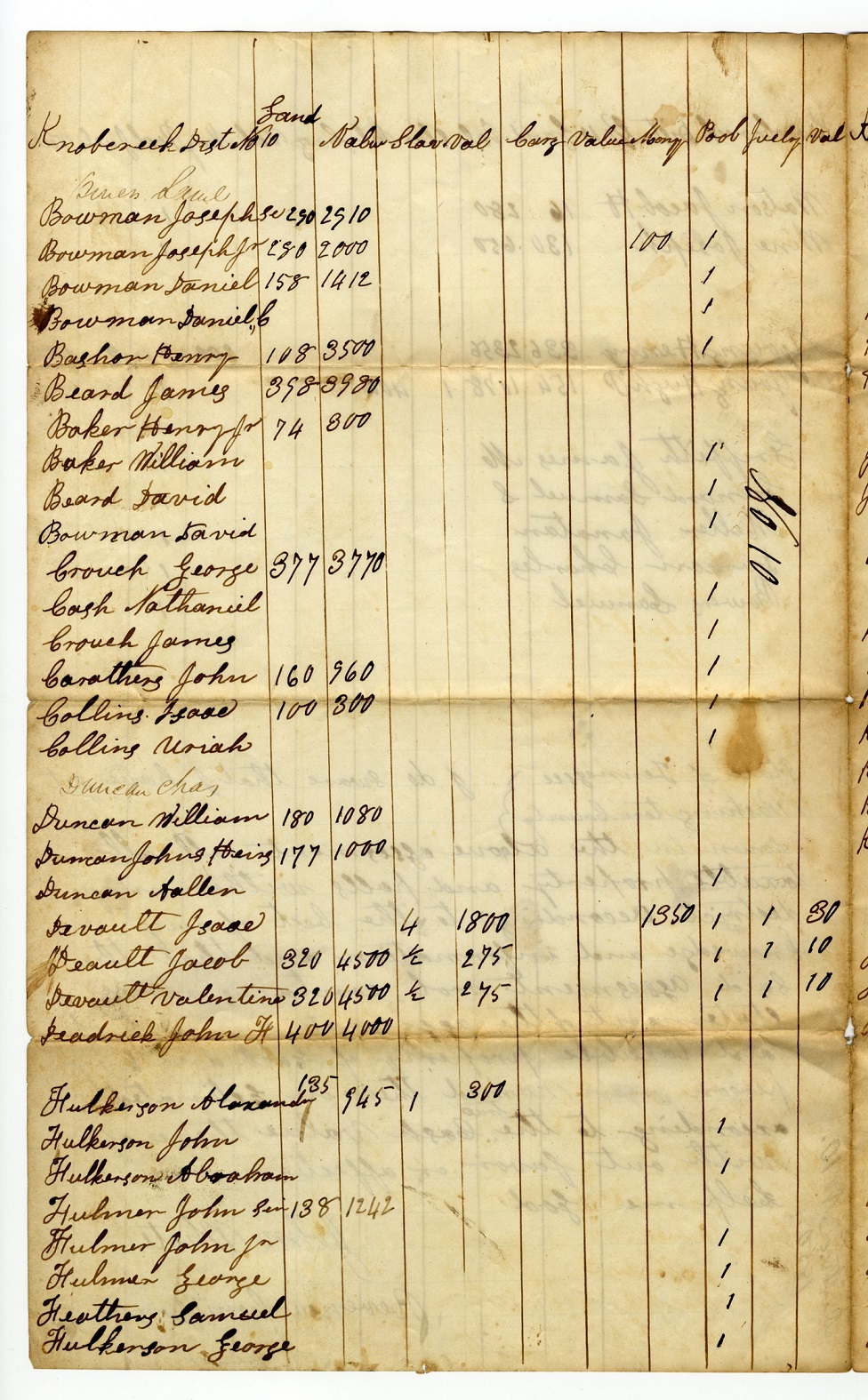Tax List – 1850 District 10 Knob Creek -1