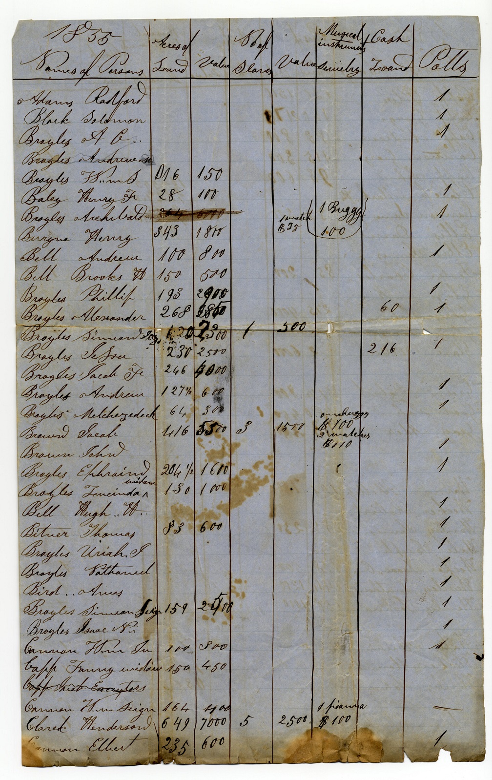 Tax List – 1855 District 1 Brooks Bell – 1