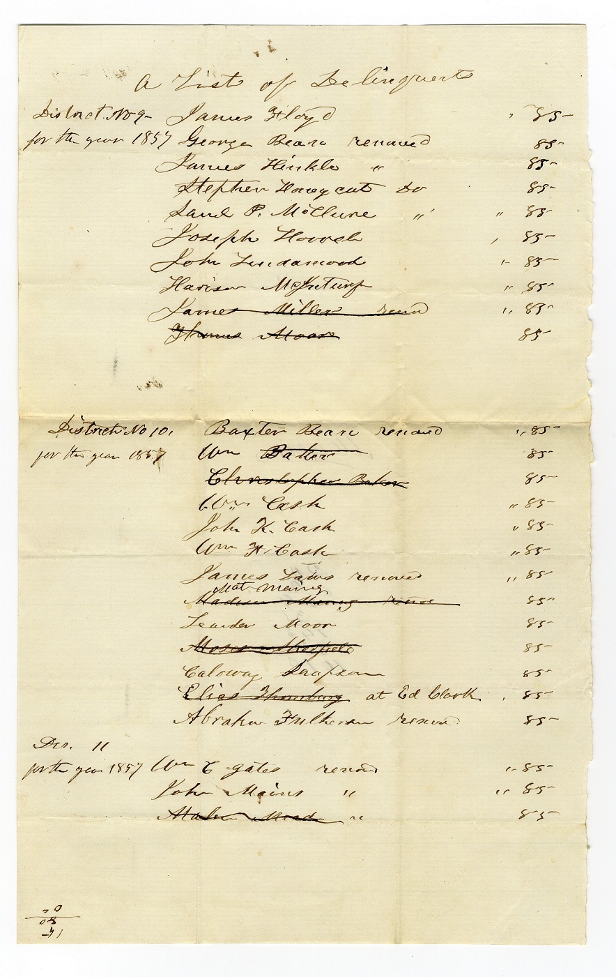Tax List 1857-Uncollected Dist. 9, 10, 11-A