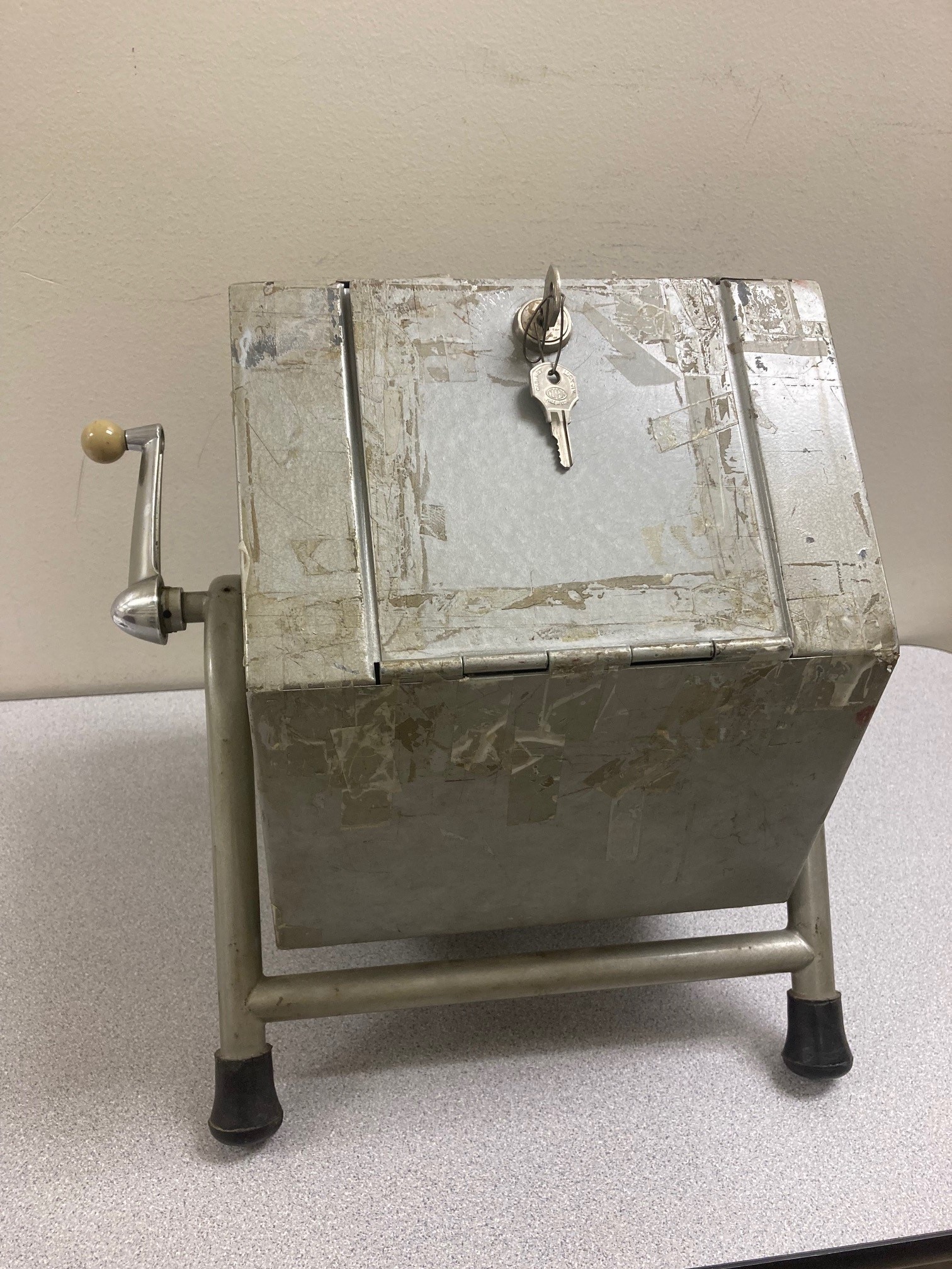Previous Image Next Image Juror Box 5. Juror Box, metal, rotating. Washington County control item # 01533. Undated. Item donated to the archives by Karen Guinn, Circuit Court Clerk, circa 2013. Like Loading...