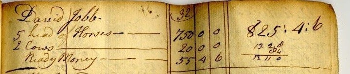 The first appearance of David Job in early Washington County is in 1779 when he was mentioned in the August term of Quarterly Court as being the defendant in a lawsuit brought about by Andrew Greer. He was also listed on the 1779 tax list (image below) for the county. He was an overseer of the road and was summoned several times to be a juror in the Quarterly Court of Washington County.