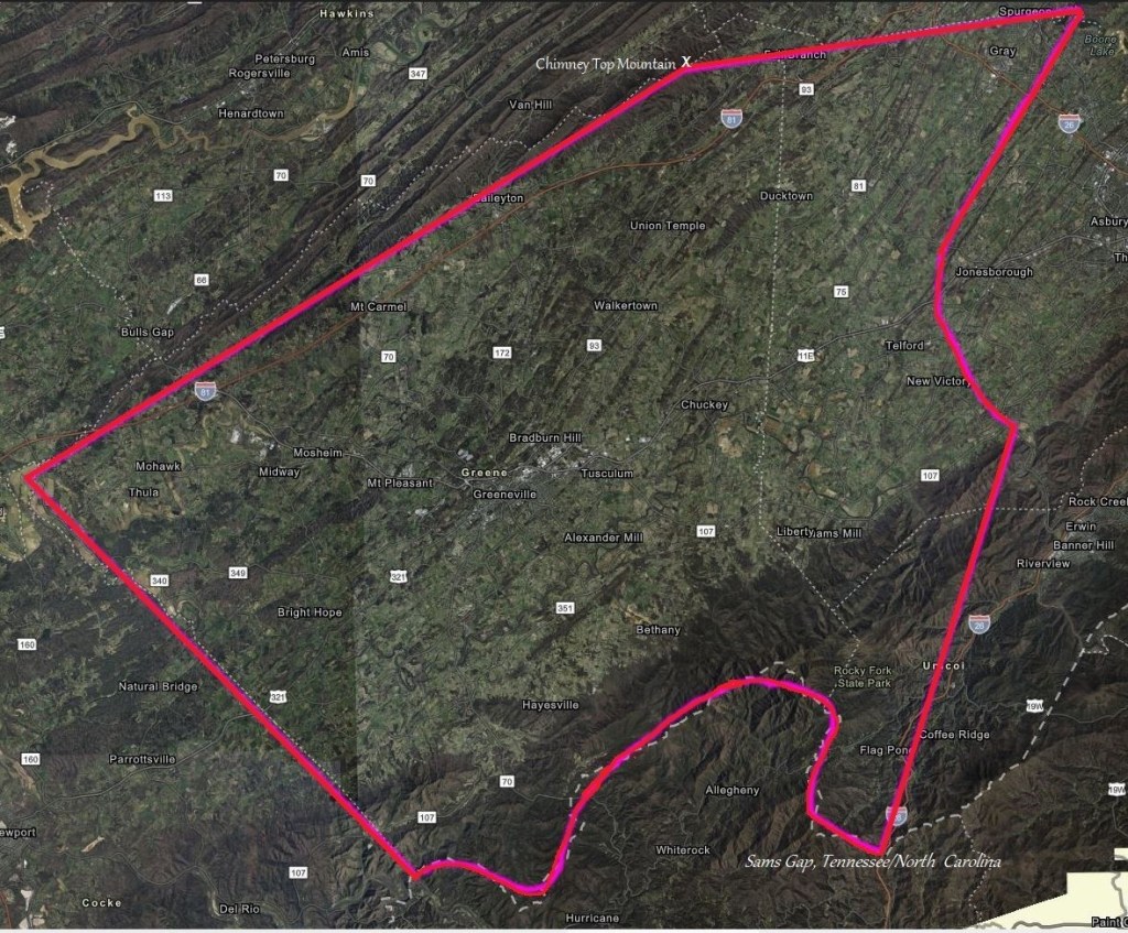 I can imagine the two, down on the Nolichucky River making that agreement, sitting underneath the oak tree that became known as the “Treaty Oak.” When all was said and done, Jacob Brown had acquired a massive amount of land–from Chimney Top Mountain in Greene County all the way to Sams Gap, at the Tennessee/North Carolina border!! A rough estimate is over 536,000 acres…mind-boggling…over half a million acres.