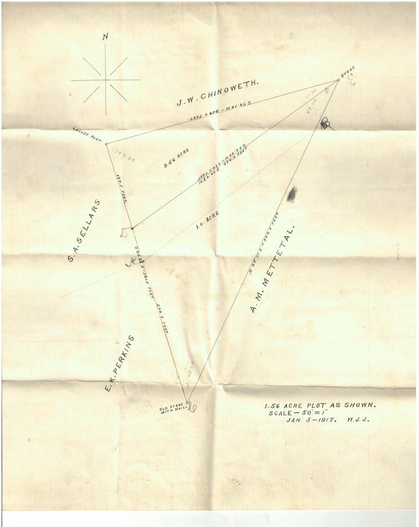 Properties of J. W. Chinoweth, S. A. Sellars, A. M. Mettetal, and E. K. Perkins 1916 Chancery Court case, 1916: John Chinoweth, et ux. vs. A. M. Mettetal.