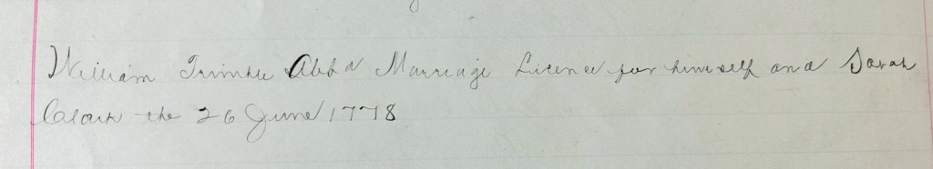 William Trimble and Sarah Clark 26 Jun 1778 (source: Washington County Court of Pleas, Book 1, page 60)