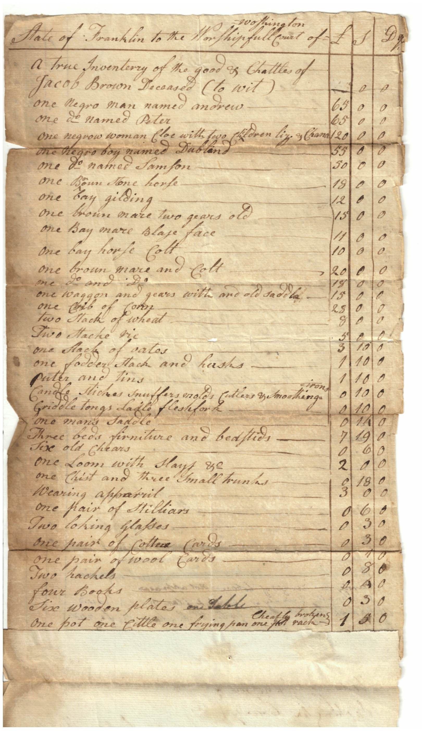 Brown, Jacob – Inventory of Estate 1