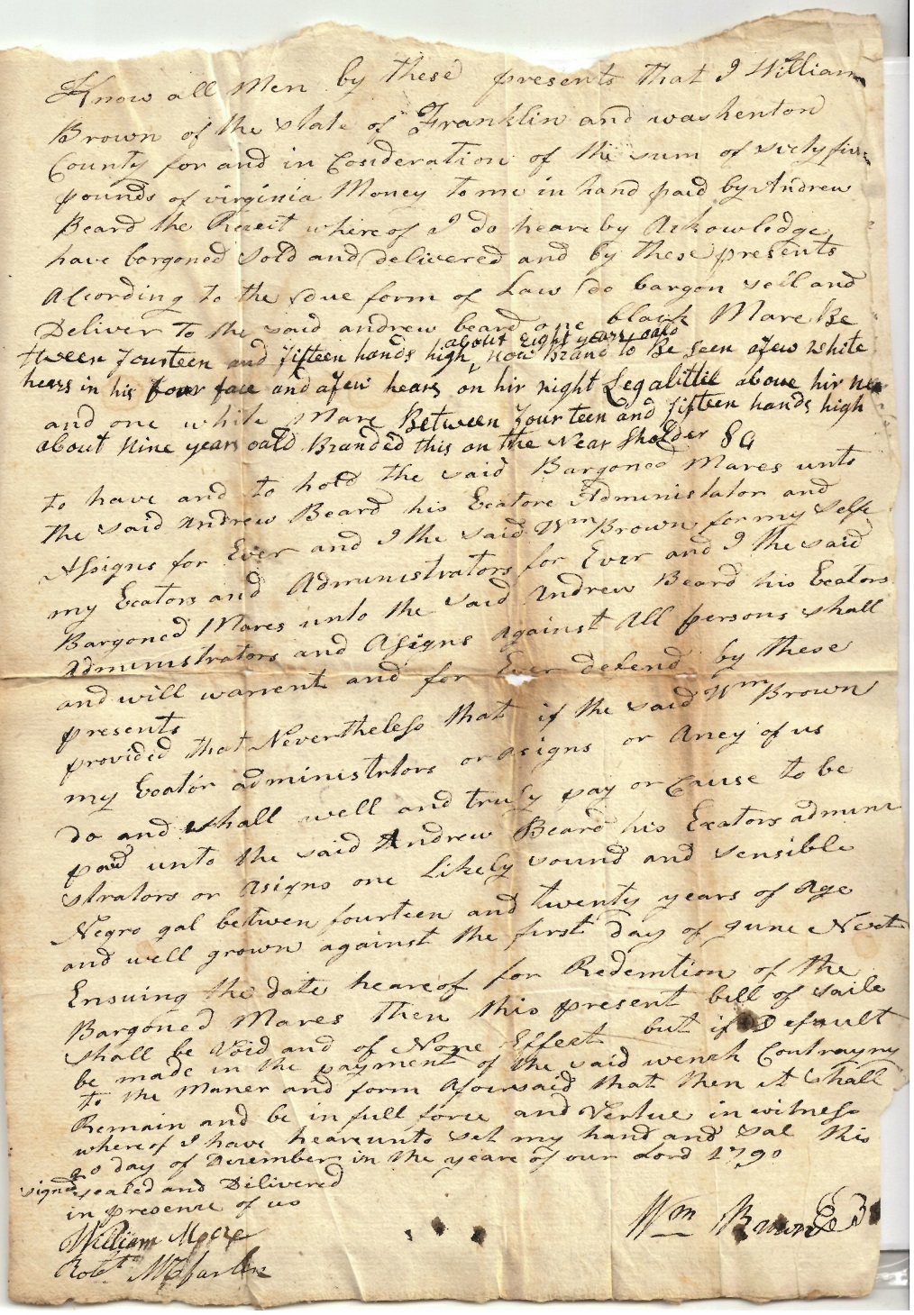 Brown, William – bill of sale to Andrew Beard 1