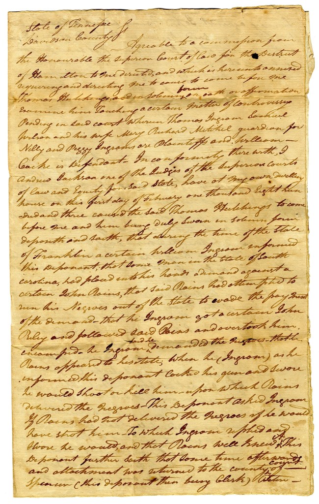 Previous Image Next Image Ingram’s Heirs vs William Cocke – Deposition by Andrew Jackson – B Like Loading...
