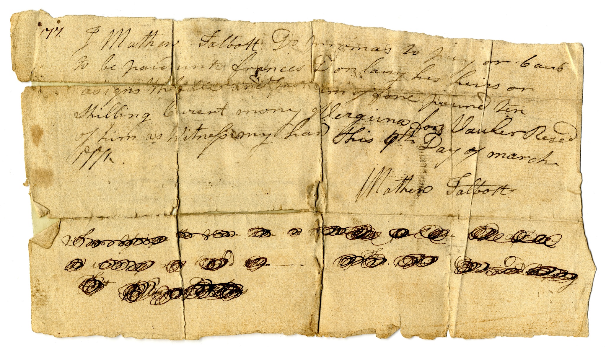 Talbott, Mathew and Frances Donlany – Receipt – A